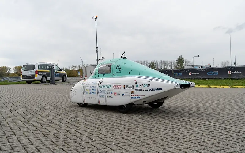 Bei uns wurde das Fahrzeug unter realistischen Wasserstoff-Betriebsbedingungen getestet werden – auch dank der Zusammenarbeit mit PEM RWTH Aachen University und der Bereitstellung von H₂.